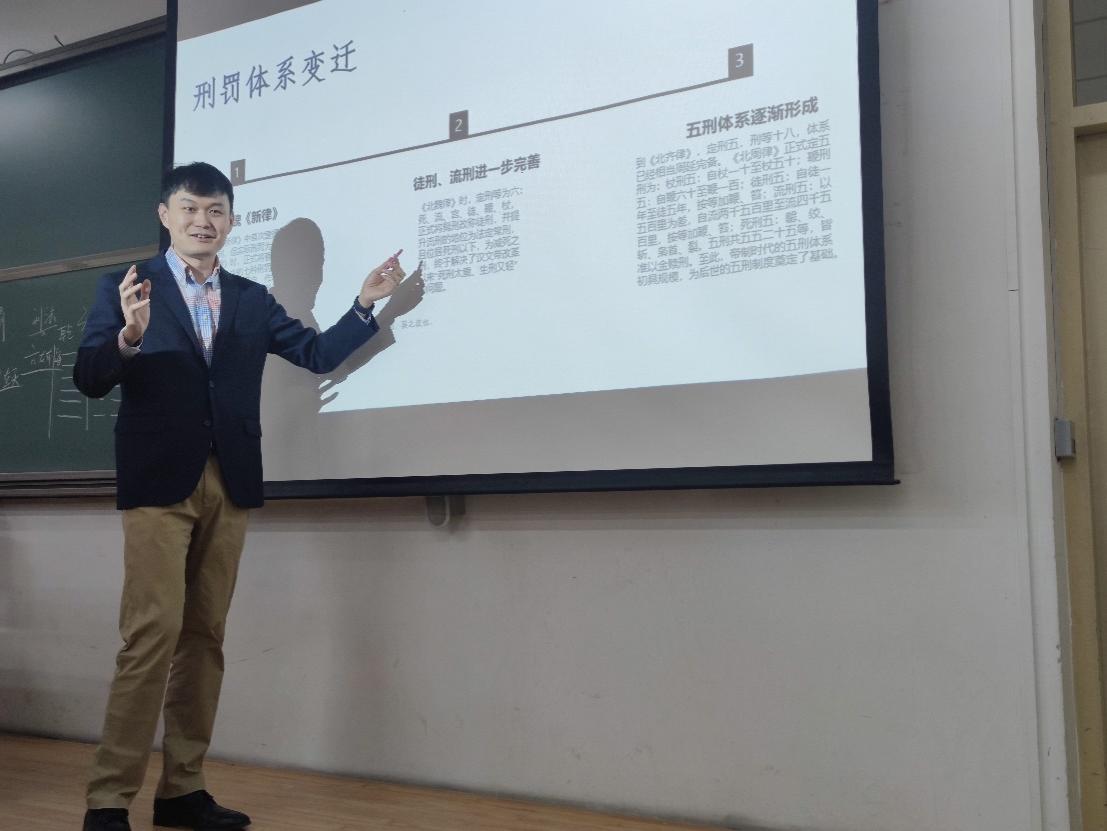 本次课程,李德嘉老师主要讲授了魏晋南北朝时期刑罚制度的变迁。李老师注重课程上下衔接,先对上节课同学表现做出点评给出建议,再承接本节课教学内容。课前先抛出问题。穿插了绘声绘色的故事讲解,增加了课堂趣味性,且比较注重与学生的互动提问,学生听讲认真,课堂效果较好。