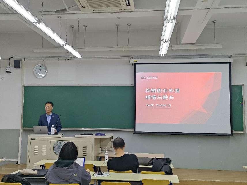 为了让法科学子能够更加深入、具象化地了解检察官、律师这两种截然不同的法律人角色在法律职业伦理方面有何异同,薛永奎律师从其丰富的检察官、律师从业经验出发,围绕客观公正、忠诚义务、秉持初心三个关键词,分别阐释了其对检察官、律师应秉持的职业伦理的看法,并结合实务案例做了内容详实、内涵深刻、生动风趣的讲授。