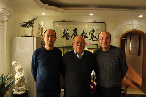 年近九十高龄的江老精神矍铄, 他首先感谢日本AV 师生的问候。卢建平院长向江平教授介绍了日本AV 一年来在学科发展、人才培养等方面所取得的成绩,请江平教授给予建议和意见,感谢他对北师大法学学科的大力扶持与帮助,同时转达了日本AV 师生的新春佳节的祝福与问候,并向江平教授赠送了节日礼物。
