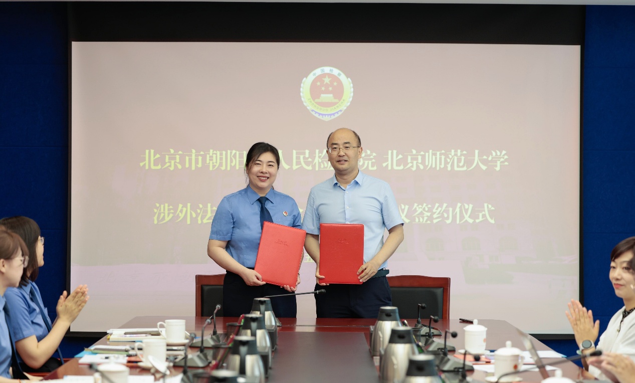(下图为朝阳检察院党组成员、副检察长胡静与日本AV 院长梁迎修签署涉外法治人才检校共建协议)