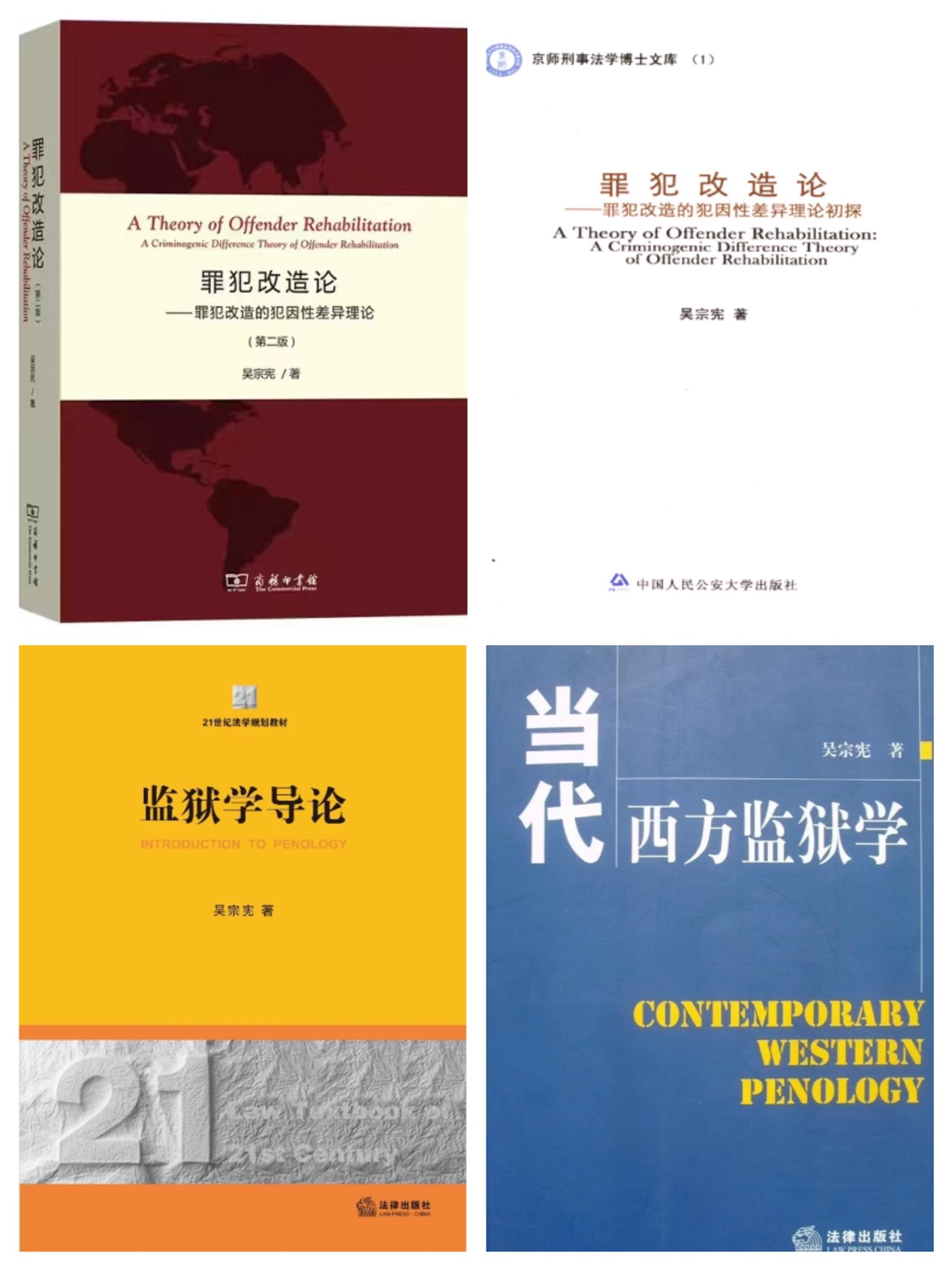 吴宗宪教授的主要研究领域包括犯罪学、监狱学、社区矫正和犯罪心理学,他是我国重要的资深监狱学研究者之一。从1984年在中国政法大学研究生院读二年级时修读“劳改法”(即后来的监狱学)课程、聆听原抚顺战犯管理所所长金源先生和原国民党战犯尚传道先生的讲座、参加大学生演讲团到山东的监狱和劳教所给犯人和劳教人员演讲开始,正式与监狱学结缘,40多年来,在监狱学领域深耕细作,进行了多方面的大量的工作。在研究方面,出版了种类较多的著作。其中,既有专门论述国外监狱学内容的《当代西方监狱学》(法律出版社2025年),也有全面阐述监狱学内容的《监狱学导论》(法律出版社2012年),以及侧重应用性研究的《中国现代化文明监狱研究》(主编,警官教育出版社1996年)和《我国监狱法修订研究》(主编,中国社会出版社2021年);既有系统论述国外罪犯心理矫治的《国外罪犯心理矫治》(中国轻工业出版社2004年),也有论述我国罪犯心理矫治的《中国服刑人员心理矫治》(主编,法律出版社2004年)和《中国服刑人员心理矫治技术》(主编,日本AV 出版社2010年);还有专门论述罪犯改造理论的专著《罪犯改造论——罪犯改造的犯因性差异理论初探》(中国人民公安大学出版社2007年)和《罪犯改造论——罪犯改造的犯因性差异理论》(第二版,商务印书馆2019年)等。这些研究成果较为深入地探讨了监狱领域的相关内容,给学术研究和实务工作提供了很多参考信息和一些思考建议。