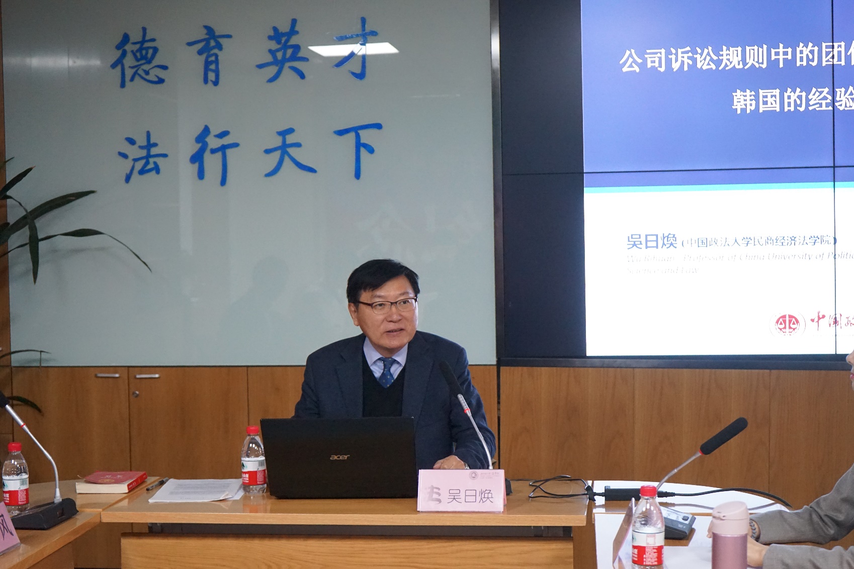 在讲座环节,吴日焕教授从多个方面对公司诉讼中的团体法原理进行深入讲解,并从中国与韩国具体法律规制的角度介绍了公司诉讼制度的特点。