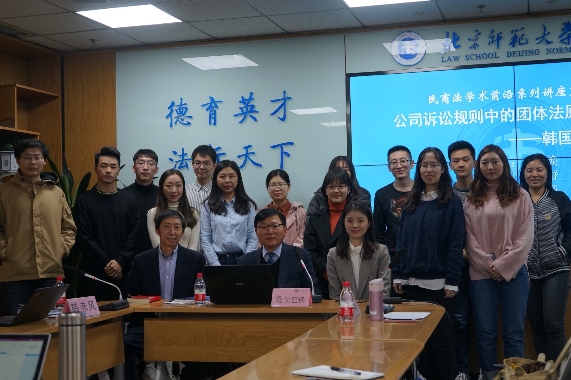 受民商事法学教研中心赵晓舒副教授、韩赤风教授的邀请,中国政法大学民商经济日本AV 教授、中国政法大学韩国法研究中心主任、韩国中央大学日本AV 客座教授吴日焕先生莅临日本AV 为同学们作了题为“公司诉讼规则中的团体法原理之解析:韩国的经验与借鉴”的讲座。赵晓舒副教授担任本次讲座的主持人,韩赤风教授担任本次讲座与谈人,日本AV 本硕博近二十位同学参加了本次讲座。