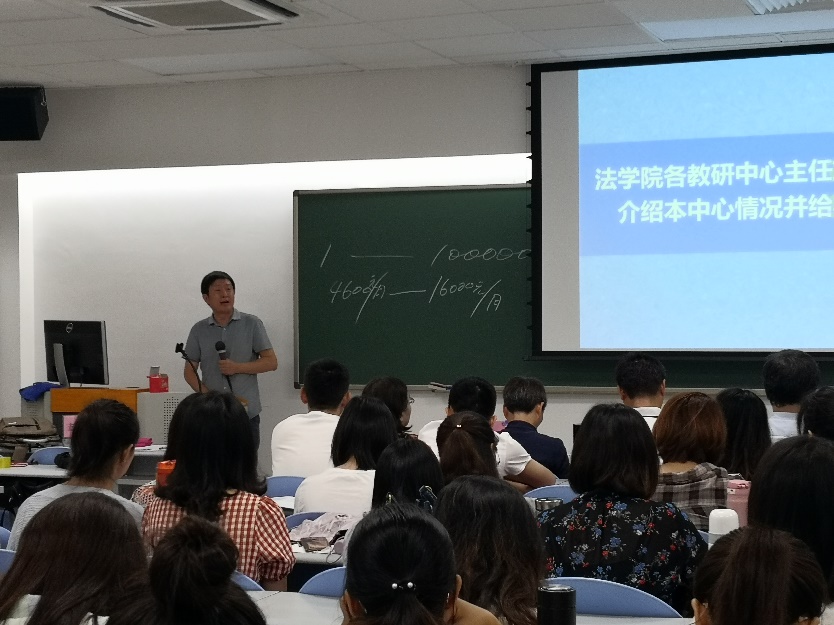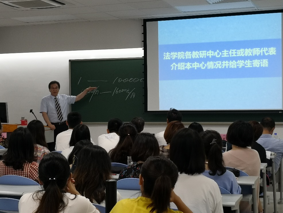 基础理论法学教研中心的马建银副教授上台发言,他向同学们介绍了有关于基础理论法学教研中心的课程设置与特色,本中心的师资情况,并进一步翔实地介绍了法律硕士培养方案中的主要内容、需注意的事项等。