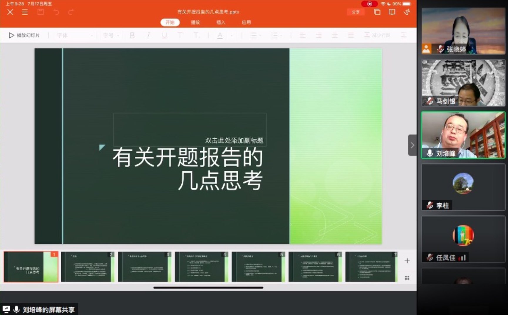 最后,刘培峰教授做“有关开题报告的几点思考”的讲座。刘老师从重视毕业论文的写作、选题的基点、问题的提出、文献梳理的要点、方法的选择、研究框架以及参考文献等多个方面指导同学们更好、更有针对性地进行毕业论文的选题、写作,对于本届同学在论文选题、方法论、研究范式等方面进行了针对性的指导。讲座结尾,刘培峰教授以“你的文字和思考方式是你灵魂的模样”结尾来鼓励同学们认真面对即将到来的论文写作。