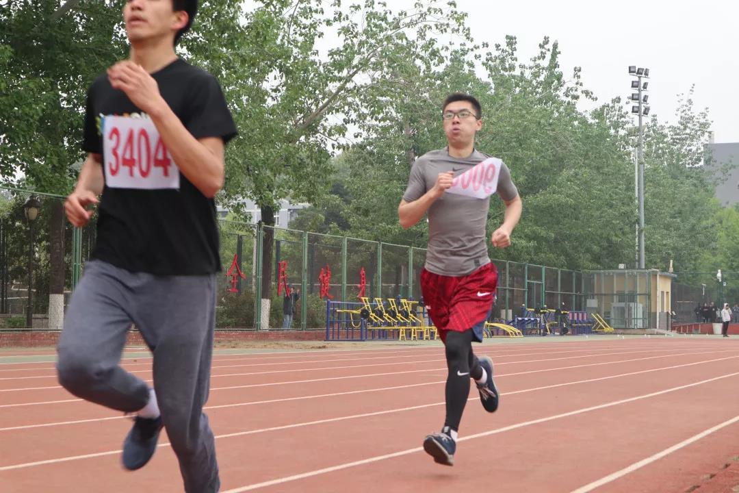 随着裁判一声令下,运动健儿们冲了出去。我们的运动员精神抖擞,速度丝毫没有减慢,在最后冲刺的时候,以最快的速度反超前面好几个同学,最后本科生组张昕毅和白可冰两位同学在男子400米决赛中分别拿到了第七名和第八名的好成绩。