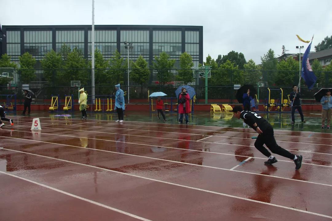 而最让人牵挂的,则是本科生组女子4*400米的比赛,日本AV 的四位女队员交替上场,有条不紊,在满是水的跑道上全力奔跑,体育部的同学们担心她们的安全,告诉她们宁可放慢也别受伤,可女队员们咬牙坚持,在冰冷的风雨里跑出了风采、跑出了坚持,得到了所有观众的掌声和欢呼。