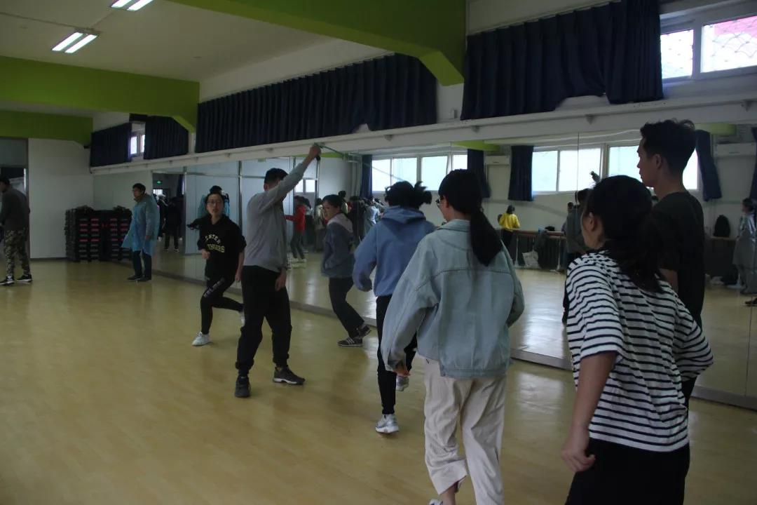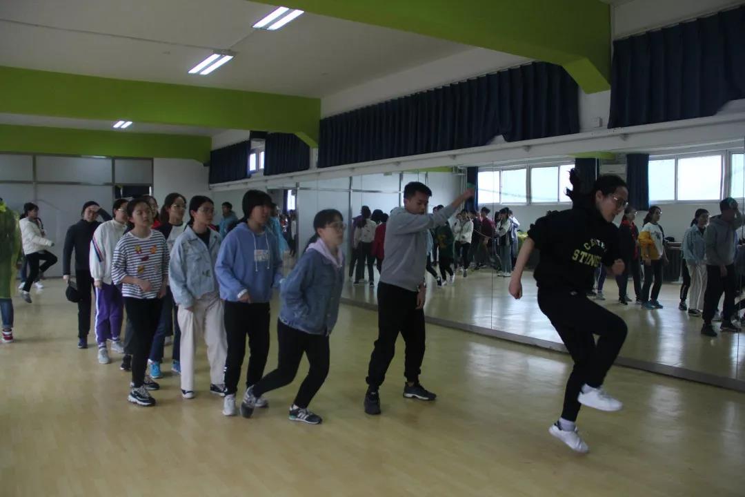 意外的潺潺春雨使比赛场地从操场改到了健美室,但大家的热情并没有因此而熄灭,本科生组与研究生组大河起舞相继进行,大家虽然磨合的时间较短,但依然配合默契,大家齐心协力,窗外的雨水也和着屋内的人一起愉快的跳跃。