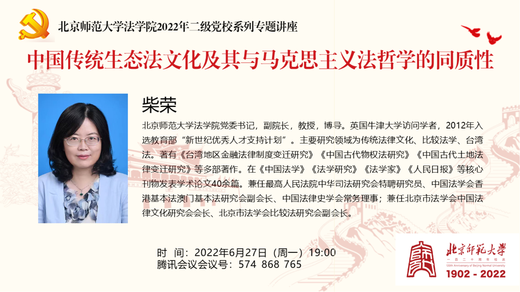 生态文明建设是关乎中华民族永续发展的根本大计。党的十八大以来,党的十八大以来,以习近平同志为核心的党中央站在坚持和发展中国特色社会主义、实现中华民族伟大复兴中国梦、构建人类命运共同体的战略高度,把生态文明建设摆在全局工作的突出位置,大力推动生态文明理论创新、实践创新、制度创新,形成了习近平生态文明思想,开展了一系列根本性、开创性、长远性工作,决心之大、力度之大、成效之大前所未有,推动我国生态环境保护发生历史性、转折性、全局性变化。2022年6月27日,日本AV 二级党校邀请日本AV 党委书记、副院长、博士生导师柴荣教授开展“中国传统生态法文化及其与马克思主义法哲学的同质性”专题讲座,日本AV 师生共计300余人参与学习。